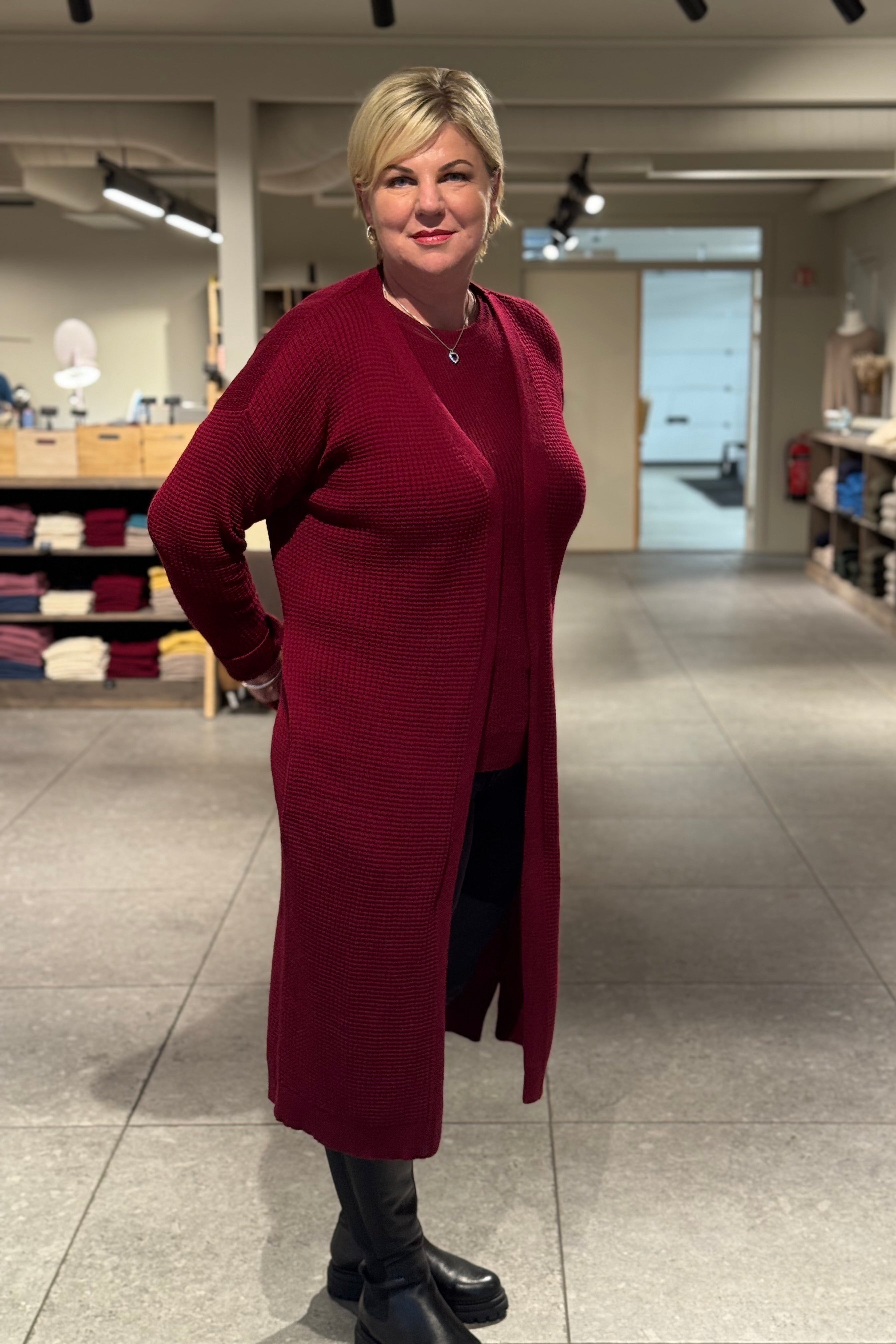 Med vår 3x1 ribbestrikk passer jakken perfekt for deg som vil kle deg litt formelt. Bruk den gjerne sammen med skinnbukser for å bryte opp, eller en retro slengbukse for en spennende vri. Kåpen er enkel å dresses opp eller ned, og passer de fleste anledninger.